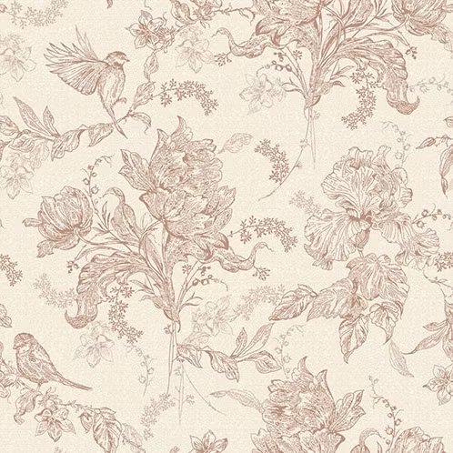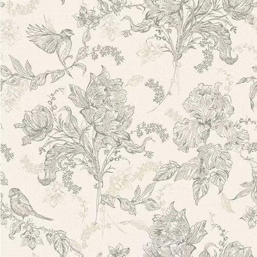 Louise är vår egen tolkning av toile de jouy, ett sirligt och elegant mönster där trädgårdens skönhet får ta plats. Tulpaner, iris och småfåglar rör sig mjukt över väggen, som en junimorgon när allt är stilla och världen just har vaknat. Mönstret har en romantisk ton och en lätthet som gör det både rikt och luftigt på samma gång. Louise förmedlar en känsla av tidlöshet, ett mönster som berättar, bjuder in och stannar kvar.